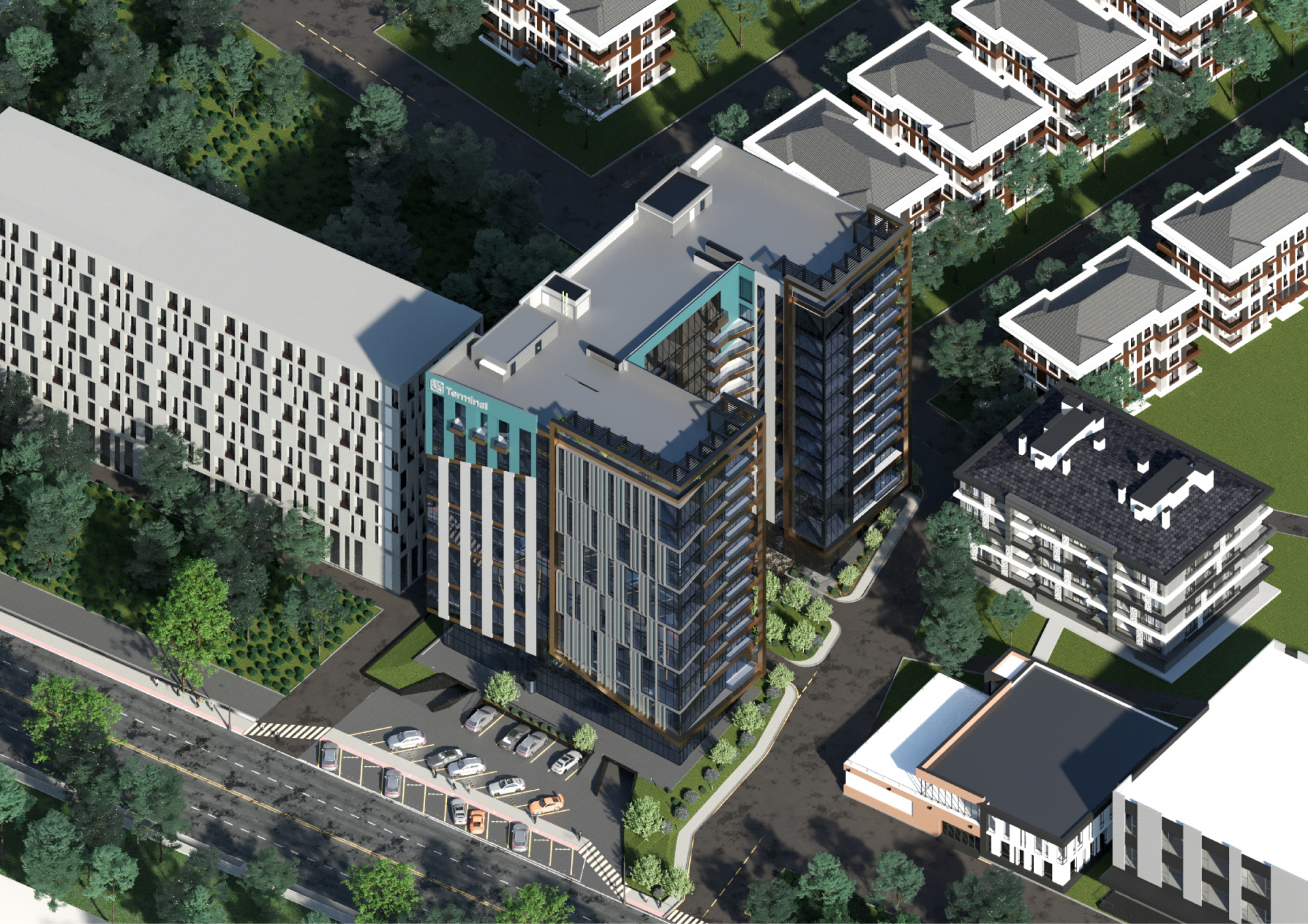 В Terminal разместятся торговые помещения формата стрит-ритейл, кафе, банкоматы, а также авторский ресторан и фитнесс центр.